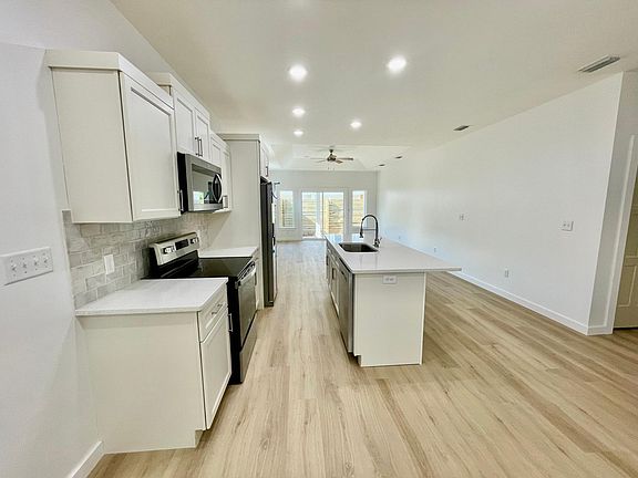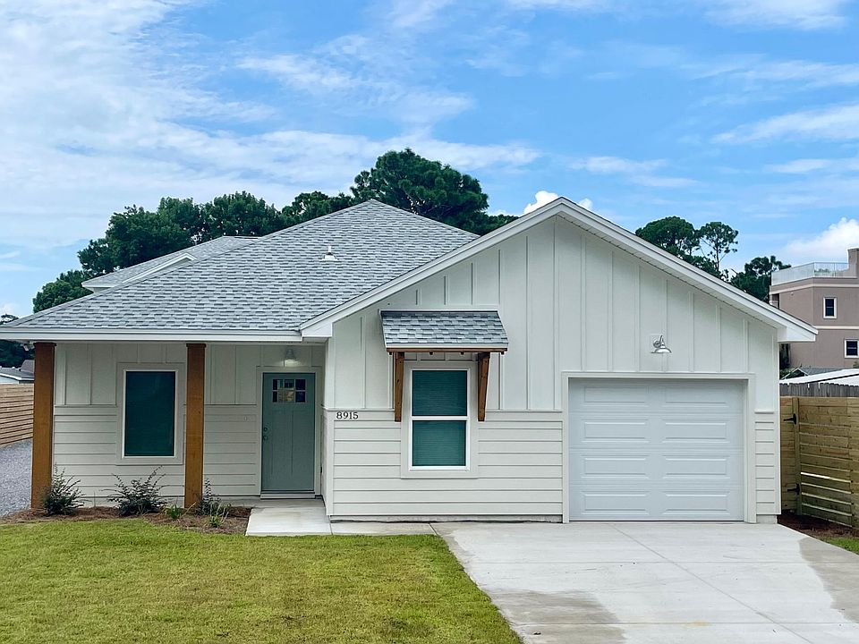This brand new 4 bedroom 2 bathroom house is located on the east end of Panama City Beach, sourounded by new homes. The home features an open concept living space for smooth transition from room to room and to the outdoors. Enjoy the Quartz countertops throughout, double vanities in the Master bath with an oversized custom floor-to-ceiling tile shower and large walk in closet. Equipped with beautiful Stainless appliances, 8ft kitchen island, luxury vinyl plank flooring, 9ft ceilings throughout with trey ceilings in the great room and master bedroom, 1-car garage, irrigation, and two covered porches to give you plenty of space. Renter is responsible for water, electric and yard maintenance.No smoking allowed.