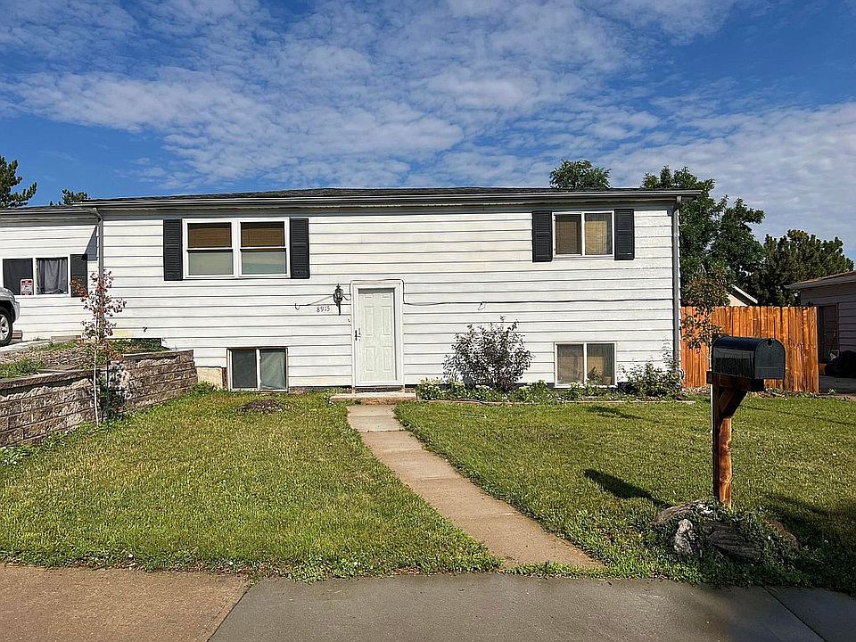 Single-family home in Thornton offers 5 bedrooms and 2 bathrooms. Main level has Living Room, 2 bedrooms, full bathroom, Kitchen, and add-on Bonus room--perfect for exercise room, pantry, ect. Kitchen has casual eating space, overlooks spacious back yard with covered patio and raised garden. Lower level has 3 bedrooms and a bathroom. Back yard is perfect for kids and pets to play, as well as for entertaining friends & family and raising chickens for your own fresh eggs! New 10X12 shed installed June 2017. Brand new updates to the Niver Creek Open space just a few minutes away. Close to RTD and Park and Ride (Wagon Rd), and convenient highway access! Call now for your showing! Updates include: Both bathrooms have been newly remodeled by professional contractors. Easy-clean windows on front and back. Replaced sewer line Jan 2016, new concrete patio and 3 off street parking spots July 2020. Both front and back doors have been replaced. Vinyl plank flooring in living room/kitchen installed Feb 2018.