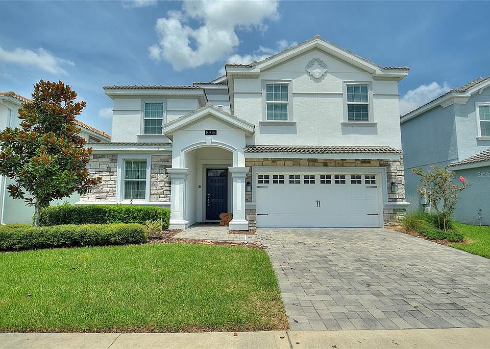 "Welcome to Model Perfect 8915 Stinger Drive" This fully furnished, turn-key rental-ready home is a dream come true! The light and airy color palette create a relaxing ambiance throughout the house. The south beach feel is enhanced by the charming shiplap wall treatment, professionally decorated to perfection. Let’s explore some of the features: The kitchen boasts stainless steel appliances and a subway tile backsplash, while the oversized breakfast bar provides extra seating. A large dining table, elegantly lit, overlooks the massive private pool and hot tub. The living room is designed for comfort and relaxation. There are two primary bedrooms—one on the first floor and another on the second floor. All bedrooms feature Jack and Jill baths. The loft serves as a relaxing games room area. For movie enthusiasts, there’s a private theater room—a perfect escape for a relaxing movie night. The backyard oasis includes a private pool and spa, ideal for unwinding or hosting a barbecue under the large covered lanai. And let’s not forget the resort-style amenities in Champions Gate: The Oasis Clubhouse offers a full-service restaurant and bar, a movie theater, arcade/game room, business center, yoga room, and a full fitness center. Enjoy 2 community pools, a water park, lazy river, tiki bar, and sand volleyball courts. Tennis enthusiasts will appreciate the courts, and golfers have access to 18-hole championship golf courses. The community is gated with 24-hour surveillance and security. Whether you’re seeking a long-term rental, a short-term vacation home, or a permanent residence, this property is a must-see! Schedule your private viewing today and experience the Florida lifestyle at its finest.