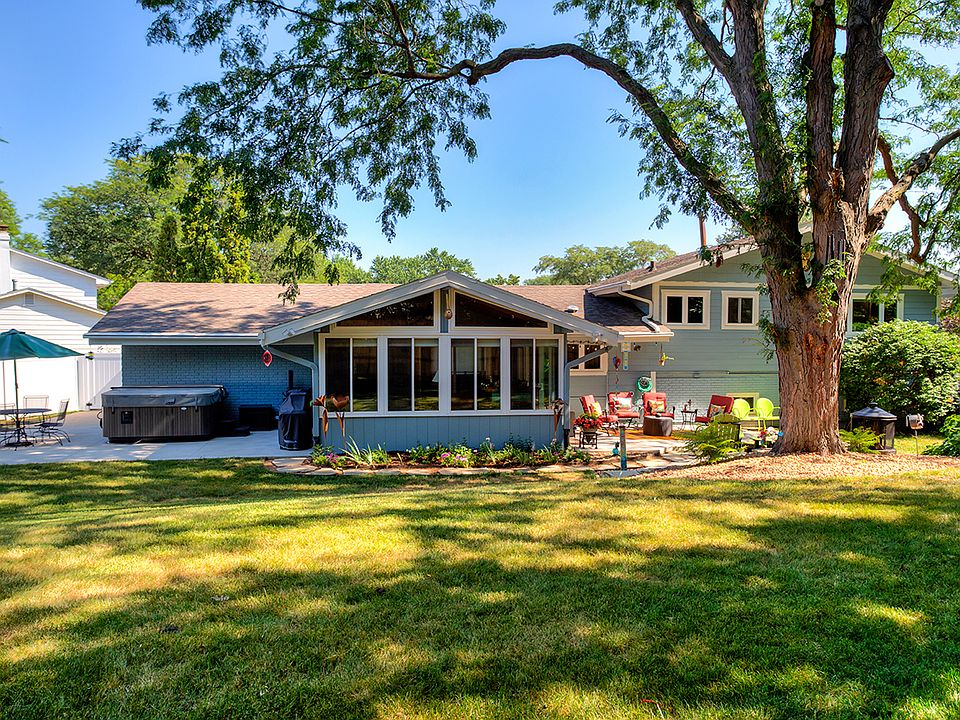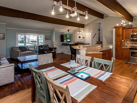 Mid-century 4-level split with ~2000 finished sf. OPEN FLOOR PLAN AND HUGE PRIVATE YARD on a wonderful quiet Urbandale neighborhood. Original design with the living, dining and kitchen areas under vaulted ceilings supported by 15" wood beams. 3 BR on the 2nd level with 1 1/2 baths. Enjoy the finished lower level family room with striking stone fireplace, a fourth bedroom/office, laundry area, plus 3/4 bath. One more level down to an unfinished shop/storage. A 4-season room is an amazing recent addition for relaxing, or enjoying the stunning landscaped back yard which includes mature vegetation and two patio areas. Over-sized 2-car garage with 3rd vehicle pad. This beautiful must-see home has many updates that include. New concrete patios, exterior siding, interior paint, carpet, updated bathrooms, new kitchen appliances, water heater, electrical panel and privacy fence.