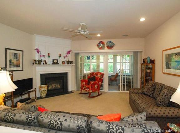 Meticulously maintained w/one of the most private & beautifully landscaped lots- Large master suite w/XL walk in closet, walk in shower, dual vanities & water closet- Secondary bedroom w/private bath entrance & generous closet space- Laundry rm w/ shelves- Open floorplan & tons of natural light- Front DR area can be used as a Den also- Bright kitchen w/large breakfast area opens to LR- Gas log fireplace- Lovely insulated sunroom can be enjoyed all year- retractable awning- Walk to shops/dining