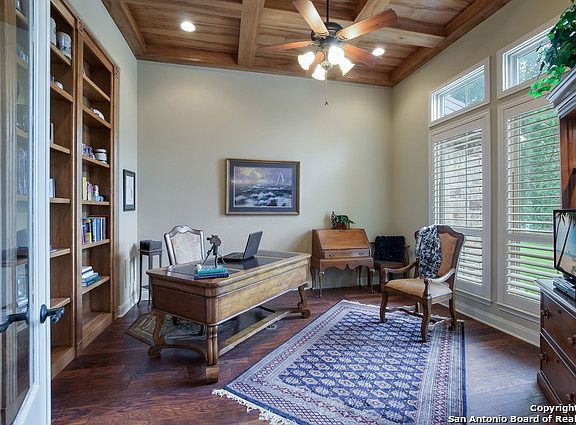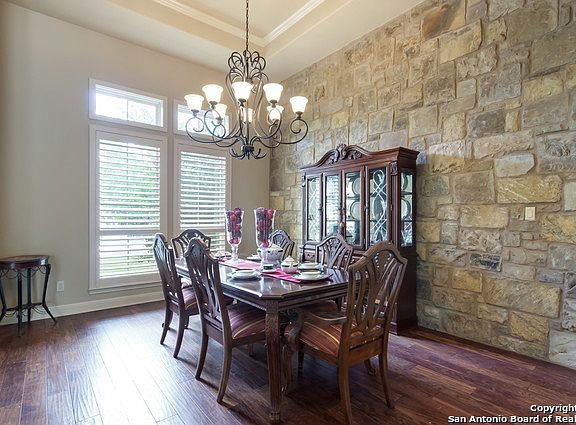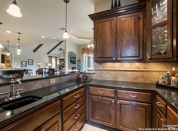 Extrodinary single-story home with an astounding amount of upgrades! This charm features a large split master with a stunning master bathroom with an accompying party shower. Gorgeous kitchen with in-wall and stainless steel appliances, truly a chef's dream kitchen. High ceilings tower overhead, tall doors, granite countertops, and wood floors throughout high traffic areas of home. Stunning backyard, full kitchen, beautiful pool with waterfall, shower, attached pool bath and electric outdoor fireplace