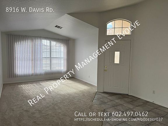 Single story 4 bedroom Peoria home with an open floor-plan, separate living/dining rooms & a spacious kitchen with island & pantry. Beautiful primary suite with tile flooring, huge closet, private access to backyard, double sinks & separate tub/shower. Private backyard includes covered patio & pavers. No pets please. 2 Car Garage Dryer Garage Oven/Range Stove Washer