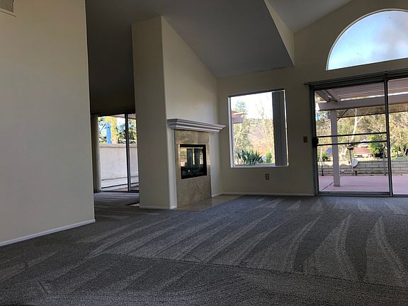MUST SEE HOME on golf course. Resort living. Property located in a first class community near Lawrence Welk Resort and Belafonte resort, easy access to I-15 and I-78. Beautiful three bedroom, two bath home surrounded by Castle Creek Golf Course and Community Club. Living room features a double sided fireplace located between the living room and dining room. An informal dining area, leads to the private backyard through a sliding glass door. Kitchen has plenty of drawers and cabinets, stainless steel appliances. Bedrooms are carpeted and most have built-in mirror closet fixtures. Also included is 2 car garage, Central AC/heat, washer/dryer hook-ups. Lots of natural light. Large master bedroom, air conditioning, two car garage, community swimming pool. HOA: $300 No Pets Allowed.