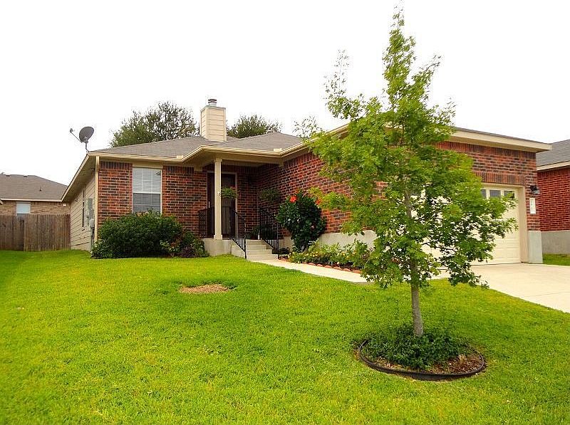The perfect one story brick home with lots of upgrades! Spacious kitchen with a center island, gorgeous Granite counters, shiny black appliances with a new dishwasher (2012), built-in microwave, ceramic tile flooring and the stove exhaust is vented to outside. The kitchen opens up to the Great Room with its high coffered ceilings, wood burning fireplace, fresh upgraded carpet and designer paint colors. Master has a walk-in closet, double vanities, garden tub, separate shower and ceramic tile flooring. Utility room, triple track storm windows, front and back storm doors, luscious professional landscape, front and back gutters, 2 car garage with shelving, community pool and playground. Private fenced backyard with 10 x 12 foot patio for barbecuing. Close to downtown Austin, F, Decker Lake and park, Dell, Samsung, UT, airport, and many other amenities.