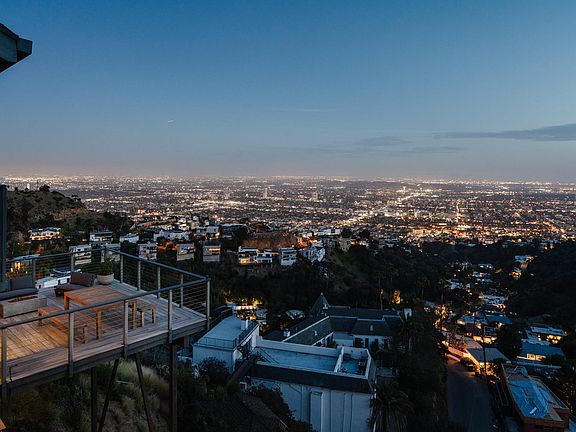 Beautifully updated traditional home with phenomenal views and guest apartment! Stylish, timeless updates with an upscale East Coast feel coupled with indoor/outdoor living and jaw-dropping views of the city and Pacific Ocean from almost every room. Soaring two-story ceilings flood the living room with light and the large patio provides a perfect spot for outdoor entertaining while watching the sunset. The main house features a den on the main level and 2 en-suite bedrooms upstairs, including the primary bedroom suite with fireplace, walk-in closet and private patio. Plus, the 1000-SF guest apartment with a separate entrance on a lower level offers a full kitchen, living and dining areas, spacious bedroom, full bathroom and a walk-in closet. Great Hollywood Hills location above the Sunset Strip with easy access to Laurel Canyon, Studio City, West Hollywood, Beverly Hills and more!