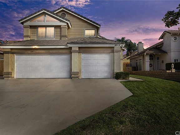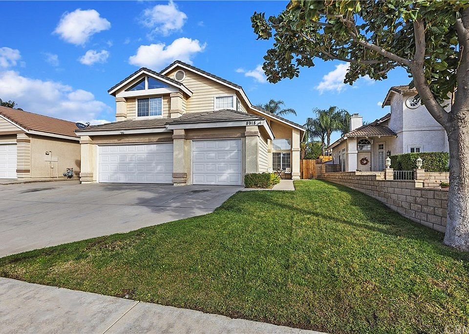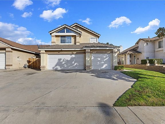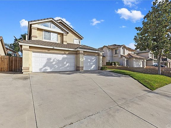 Welcome home to this beautiful home in Orangecrest, one of Riverside's most highly sought-after neighborhoods. Upon entry, you are immediately captivated by the impressive staircase and by the volume of space in the home highlighted by its soaring ceilings and streams of natural light. This 2,131 sq. ft. 4 bedrooms, 3 bath, 3 car garage home boasts new wood shutters in the dining room and living room, wood laminate flooring throughout, and ceramic tile in the kitchen. The family room has a cozy granite fireplace and there is a bedroom downstairs that can be used as an office or for guests. There is also a full bath and inside laundry downstairs. The updated kitchen features granite countertops and new stainless-steel appliances and a new sliding glass door that leads to a nice yard great for entertaining. Once upstairs enter through the double doors into the generous master suite with a private bath with separate shower and oval soaking tub. Two additional bedrooms, a full bath and linen are perfect for the kids. Walking into the backyard, you will definitely notice the patio cover, lush landscaping with plenty of room to plant a garden, and new wood fencing. No HOA and low taxes. Walking distance to schools, parks, shopping, and restaurants. Conveniently located near the 91 & 215 freeways.
