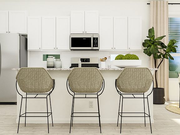 The largest two-story home in the collection, this home features private bedrooms and bathrooms on both levels, offering plenty of space. The second floor highlights a balcony overlooking the first floor and reveals a large bonus room and unfinished attic. Estimated COE April 2023. Prices and features may vary and are subject to change. Photos are for illustrative purposes only.