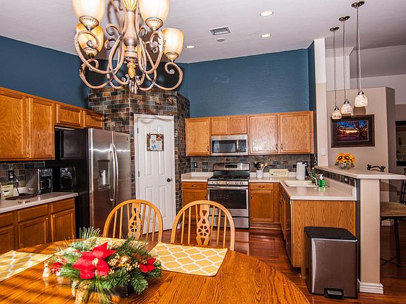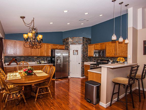 A wonderful turnkey Single Family home highlighting an open & spacious split floor-plan with a Great Room concept. 3 bedrooms, 2 full bathrooms, 2 car garage with RV parking Pad. Large Kitchen has an abundant amount of oak cabinets, tile backsplash, SS Appliances, bar seating and dining area. A very warm, inviting home with a cozy fireplace, new hardwood laminate floors in all the main traffic areas and new carpet in the bedrooms along with tasteful paint colors throughout. Wonderful enclosed 10x20 AZ Room (not included in SQFT) that opens up to fenced back yard with a functional gazebo and great views. Refrigerator, washer & dryer and security system are all negotiable. Roof was just replaced in August of 2015.