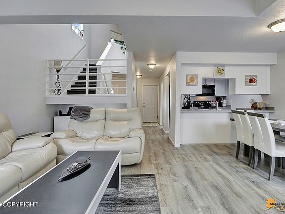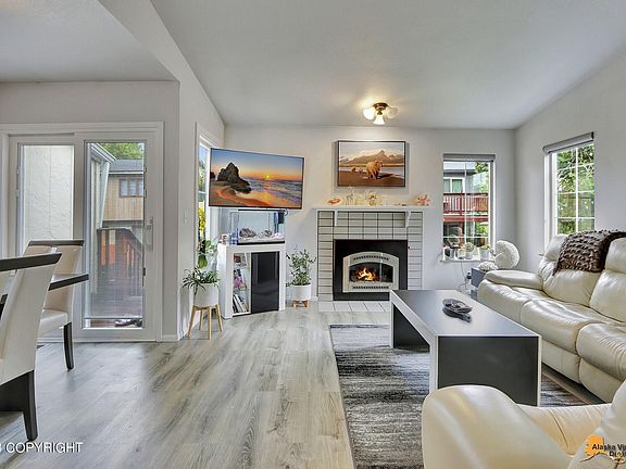 Southside location. Cute home with 2 bedrooms and full bath upstairs. Kitchen with matching black kitchen appliances with white cabinets looks sharp. Nice yard. Guest half bath downstairs with washer and dryer. Well maintained home close to all conveniences including schools, grocery stores, restaurants, Campbell Lake, Kincaid Park, Jewel Lake, Delong Lake, Campbell Creek, and Jewel Lake Bowl.