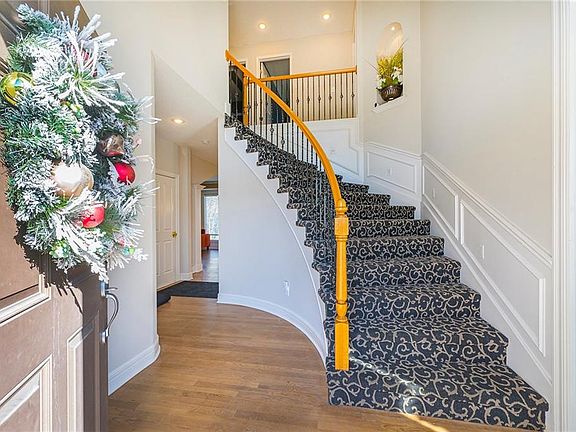 NEW Interior Paint and Carpet Allowance. Open & light filled floor plan with hardwood floors refinished 2023 & crown molding. Spacious kitchen w/granite counters, Freshly Painted Cabinets, breakfast bar. Cozy hearth/breakfast room w/fireplace opens to great room and is perfect for entertaining. Formal dining room w/bay window. Finished walk-out lower level offers additional living space, game area, half bath & extra storage. Large primary suite has trayed ceiling, dual vanities, jetted tub & walk-in closet. Secondary bedrooms are spacious. NEW ROOF Feb 2025 -24 Hour Notice Please
