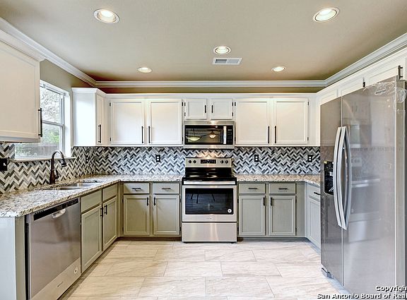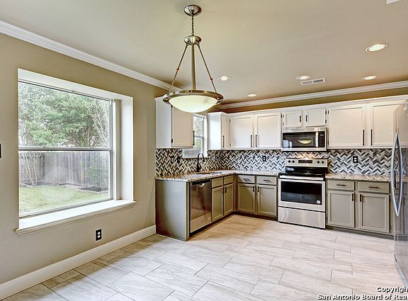 Crowning jewel in the highly desirable Forest Creek Sub! Stunning 2-story home with brand new high end custom features and exquisite finishes throughout! Home boasts crown molding downstairs, gorgeous bamboo and tile flooring. Granite throughout with custom herringbone mosaic backsplash in kitchen. Brand new SS appliances, carpet, fixtures, and hardware throughout. Conveniently located to great shopping, dining & major employers. Minutes from I-35 and 1604. Don't miss your chance with this spectacular home!