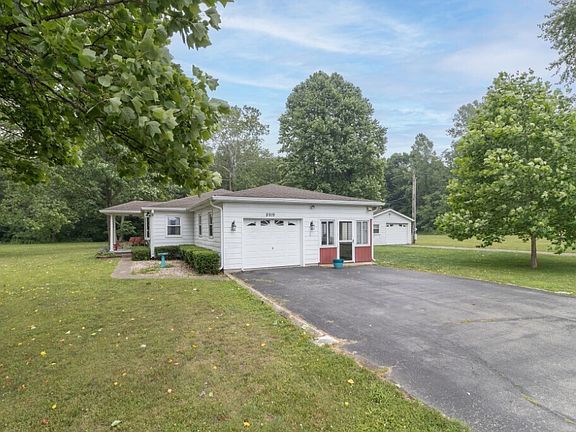 Sitting on approximately .75 acres, this partially wooded property is great for someone who wants to be close to everything and out of the city at the same time. The home has 3 large bedrooms and 1.5 baths. Large kitchen that includes the stove, microwave, refrigerator, and has lovely built in cabinetry. There is a nice large dining room that could be a family room, large living room and main floor laundry. The basement has a nice space that could be easily finished. The attached sun room provides a great sitting space for 3 seasons and the front entrance has a covered porch for sitting as well. Besides the attached 1 car garage, there is a detached 2 car garage, a storage shed and an Amish built shed with yet another space to sit and