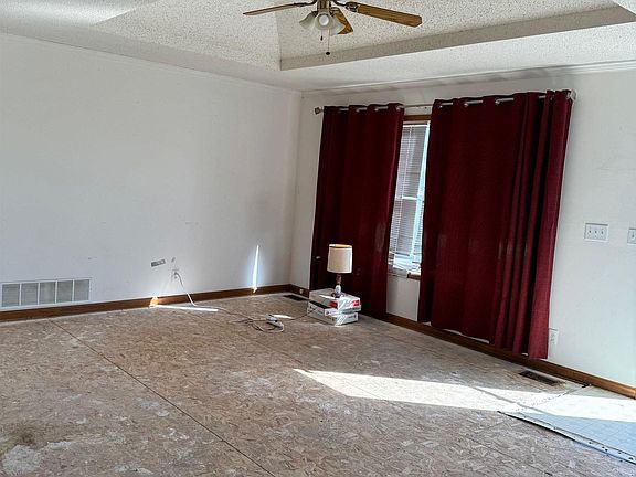 Unique home on 27 acres m/l with a double car garage and 30x60 outbuilding. This home boasts 3 bedrooms, 2 baths, eat-in kitchen, dining room, large living room and unfinished basement with the amenities to put in a full bath. New metal roof on the spacious 30x60 outbuilding on a concrete slab! Floors in the house are ready the Buyer to complete new flooring. Great buy for the new owner!