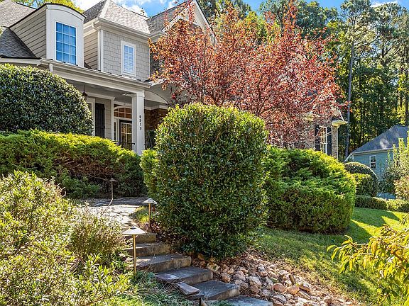 Quietly tucked in on almost half an acre, proximal to Umstead State Park, the home still manages to tick ALL the boxes inside and out. One of only 11 houses in Ebenezer Park, privacy is evident and the property has phenomenal landscaping, hardscaping, fruit trees, front porch, screen porch, deck and patio with fire pit. Enter upon the full height foyer or the oversized garage with custom storage. Main floor layout includes an open kitchen, primary suite and dedicated office space. Unique, carefully chosen finishes, include maple floors, maple cabinetry in kitchen, beautiful granite and stacked stone at the fireplace. Second floor has three additional bedrooms, but also flexible space that includes a bonus room, loft space, fitness room and walk-in storage. For the size, the house and property live larger than perceived on paper. Truly one to see in person. Walk to Umstead via neighborhood trail or the to-be-completed City of Raleigh Greenway extension to Graylyn Dr. Easy access to RDU, RTP, I540 and numerous amenities.