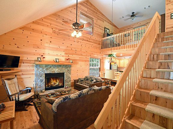 This custom built, one owner cabin is ready for you to move in. This home comes completely furnished down to the silverware and yard tools. It has been maintained so well. You will walk in and see beautiful tongue and groove throughout the great room with a wood burning fireplace. The rest of the house has a perfect mixture of T & G with sheetrock. The main floor also has a bedroom, bath and laundry. The upstairs has a second bedroom, bath and loft that can be used for additional sleeping area or office. The unfinished basement has a garage and room to be finished out for more living space. Two separate driveways to get you to the main level and the basement. The 1.45 acre lot is mostly wooded but does have a cleared area for a garden. The home is coming furnished with the exception of a few sentimental pieces of furniture and equipment in the basement.