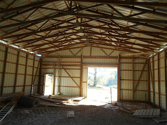 Nice Home and Farm The home has 2,373 sq ft of living space with 4 bedrooms and 2 bathrooms. You walk into beautiful vaulted ceilings in the living room, kitchen and dining rooms. The home has radiant heat in the floors and all of the open door ways are arched. It is topped off with a wood burning fireplace in the living room and a breezeway attaching the garage. The farm is 48 acres with a good balance of open ground and wooded. It has a 1/4 mile frontage on two roads and approx. 8 acres is fenced. It also has a 32'x40' pole barn.