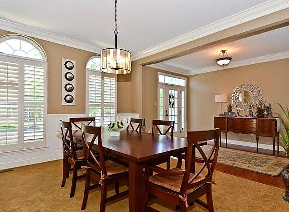 Walking Distance to Winghaven CC! Stunning 5 BR, 3.5 bath, 1.5 story home w/approx 5000 sf of finished living space; Gleaming hdwd floors in foyer, Great Room, Kitchen, Breakfast Area & Sunroom; Dining Room just off foyer w/plantation shutters, crown molding & stylish wainscoting;Two-story Great Room features Palladian Windows, Ventless Gas Fireplace, Crown Molding & built-in bookshelves. Kitchen/Breakfast Room & Sunroom w/vaulted Ceiling; Updated Kitchen w/granite counters, tile backsplash, center island/brkfst bar, SS appliances, dbl wall ovens, maple cabinets w/crown molding; MF Laundry w/ built-in cubby system; MF Master Suite w/crown molding; Master Bath offers dual vanity, corner soaking tub, sep shower & walk-in closet; UL offers three spacious bedrooms, full bath & bonus/loft area;Finished walk-out LL offers 2nd gas fireplace in family room, wet bar w/kitchenette, full bath, bedroom; Deck & stamped concrete patio back to trees; Subdivision amenities incl parks & walking trails