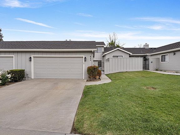 Country Club Living! Wait until you step foot inside this townhome at Ridgemark Golf and Country Club's "the Bluff's". So much natural light! Remodeled kitchen with granite counters, lots of can lighting, painted cabinets with oil rubbed bronze hardware. Extensive LVP and tile flooring, living room has wood burning fireplace with new mantle, trim, and built-in bookshelves. Split system air conditioning for both primary suites! Ceiling fans, newer bath vanities and light fixtures, too. But wait, there's more! Whole house water filtration softening system, plantation shutters, full bath on first floor including marble shower. Formal dining room, great golf course views, freshly painted concrete in courtyard and front door. What are you waiting for? Call your Realtor today and come see why this is where you will want to call home!
