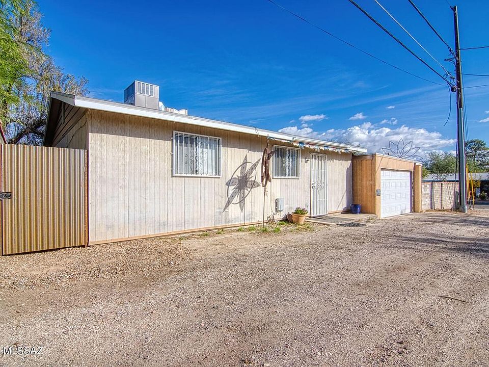 This cozy and secluded 2 bedroom 1 bath home has just been completely updated with a brand new fresh paint job. The soft white interior brightens the living/dining area and brings warmth to both the bedrooms. On top of fresh paint, there is a brand new central AC and Heating system; a brand new water heater; and a brand new washer and dryer set. Everything to make this home comfortable and inviting. The home has it's own private semi enclosed garage space with a working garage door. This opens into a private fenced in yard with it's own utility shed for extra outdoor space. There is an open floor plan in the main living and dining area that feeds right into a conveniently open kitchen. The side yard is completely fenced in and private and adds a lot of extra outdoor space to enjoy in good weather. Location is key, and this home is strategically placed just 10 minutes from Banner Medical and 15 minutes from downtown and the University of Arizona. Directly on convenient bike paths and transit lines, getting around town has never been easier. Furry friends are welcome with a cleaning deposit. (**Current photos do not reflect the new paint job. Schedule a tour to come check this place out!) Tenant pays utilities. Refundable deposit due at signing equal to 1 month's rent. Typical 1 year least automatically defaults to month to month.