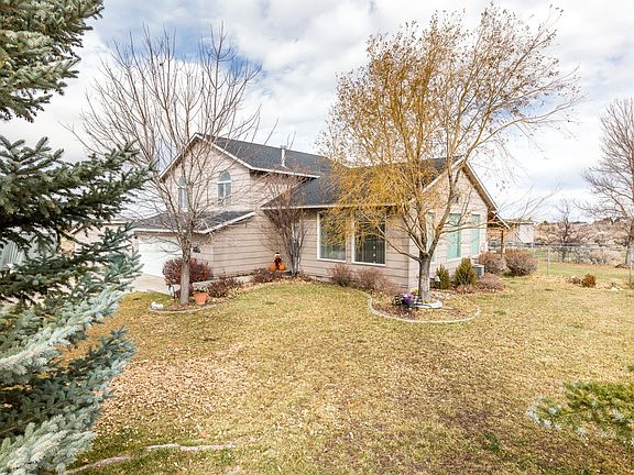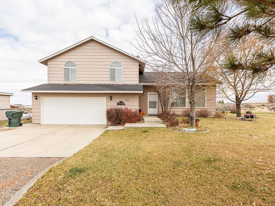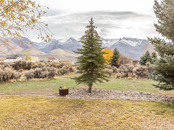 Pride of home ownership shows in this 3 bedroom, 2 1/2 bathroom, and 1732-SF home. As soon as you enter the front door you'll see the sprawling main living areas. The living room is very open w/ a pellet stove to keep you warm, and wrap around windows with stunning views of the Rubies. Dining room features a slider to the covered back patio. Go over to the updated kitchen and see the endless cabinets, solid surface counter tops, and all the appliances stay! 3 stairs down to a half bathroom that opens into your laundry room. Family room down stairs is oversized and ready for entertainment w/ a pellet stove and a slider out to the back patio that leads to the established yard. Upstairs has two bedrooms that are nice sized w/ great closets. Master bedroom is huge with a master ensuite. Master ensuite has double sinks, glass shower door and a large walk-in closet. This yard is manicured w/ mature trees and grass. Full sprinkler system, drip system, and curbing. The back yard is fully fenced w/stunning views of the Rubies! Thats not all! There is a fenced area for dogs, horseshoe area, a playhouse with slide, and a SHED on a concrete slab!. Schedule a showing today!