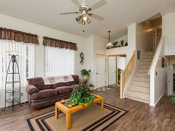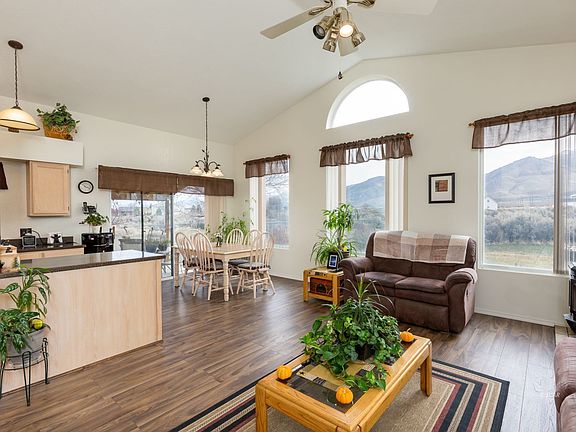 - Features And Inclusions: Flooring- Vinyl, Dishwasher, Garbage Disposal, Microwave, Refrigerator, Flooring- Carpet, W/D Hookups, Oven/Range- Electric, Patio- Covered, Walk-in Closets, Trees, Patio- Uncovered, Flooring- Linoleum, Storage Shed, Water Heater- Propane, Vaulted Ceilings, Lawn, Sprinklers- Drip System, Sprinklers- Automatic, View of Mountains, Fenced- Partial, Sidewalks, Bay Windows, Dog Run, Pellet Stove, Ceiling Fan(s), Chandelier(s), Faces: East, Blinds, Landscaping: Full, Horses Allowed