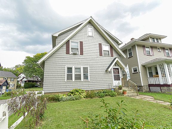 This vibrant 2 story home is located in the City's desirable 19th ward neighborhood with easy access to URMC, Genesee Valley Park recreation, shopping, expressways, Airport and more! It boasts all the character and craftsmanship that is expected of these very special homes, including rich hardwood floors with a beautiful dark walnut stain, Gum wood trim, leaded glass accent windows and doors, and faux brick fireplace. The kitchen is fully applianced. The dining room opens to the private porch through French style doors and over looks lush flower and vegetable beds. The 2nd floor offers 3 full sized bedrooms and full bath with tub-shower combination. The attic is a full walk up. The basement houses the laundry area with wash and dryer and the homes mechanicals. Hot water tank 2023; Roof partial tear off 2022; chimney repointed 2018; forced air gas furnace approximately 10-15 yrs old, appliances conveyed as-is condition. Delayed negotiation, Tuesday, 10/8 at 6PM. OPEN HOUSE Sat, 10/5, 1PM-2:30PM
