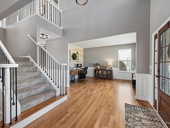 Welcome to your DREAM HOME! This stunning Waterford Estates home is spacious, immaculate, updated, and well-maintained! Boasting 5 bedrooms and 5 full bath and offering over 5,000 square feet of luxurious living space... As you enter, you'll be greeted by a grand entrance with 2-story foyer with gorgeous split staircase, and living & dining room that are tastefully decorated. Updated light fixtures, and natural light flood this home... Impressive 2-story family room is the featured space, adorned with large windows and a cozy fireplace. The main level features beautiful hardwood floors throughout most areas! Meticulously updated kitchen with sharp white cabinets, elegant quartz countertops, custom shelves, a stylish subway tile backsplash, and stainless steel appliances. Double wall oven for your cooking needs. The center island and large pantry make this kitchen a chef's delight. Also on the main level you'll find a 5th bedroom and a full bath, perfect for guests or multi-generational living! The 3-car garage has room for cars & toys! Brand New Driveway in 2023! Convenient updated mudroom includes a custom bench with storage & hooks, storage closet, and washer and dryer. The finished basement is impressive... offering a full kitchenette, remodeled bathroom, recreational area, and a workout room that could easily be converted into another bedroom - so ideal for an in-law suite or extra living space, or teens that just want to hang! Upstairs, you'll find 4 generously sized bedrooms. The owner's suite is a true retreat, featuring a luxurious 2-sided fireplace, a cozy sitting area, dual sinks, a separate tub and shower, and a massive walk-in closet with custom built in organizer closet system. Two of the additional bedrooms share a Jack & Jill bath, while the fourth bedroom enjoys a private bath, ensuring comfort and privacy for everyone! Step outside to the low-maintenance Trex deck, perfect for entertaining or relaxing. Situated on a peaceful cul-de-sac lot, this home is conveniently located near Crystal Lake Schools, Randall Rd, parks, and recreational amenities. Don't miss this opportunity to own a home that offers elegance, functionality, and modern comforts in a prime location!