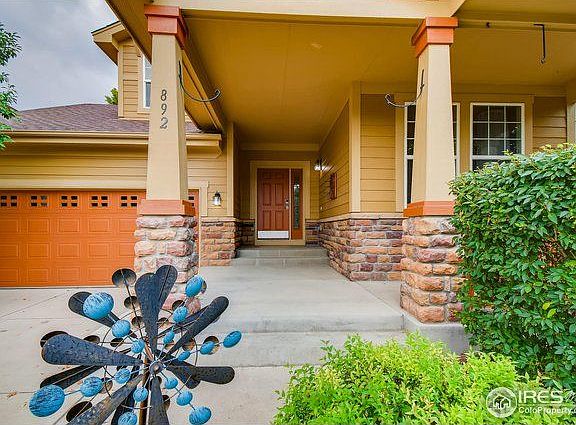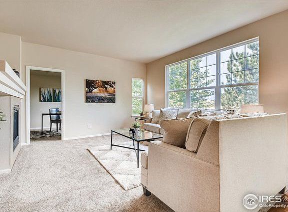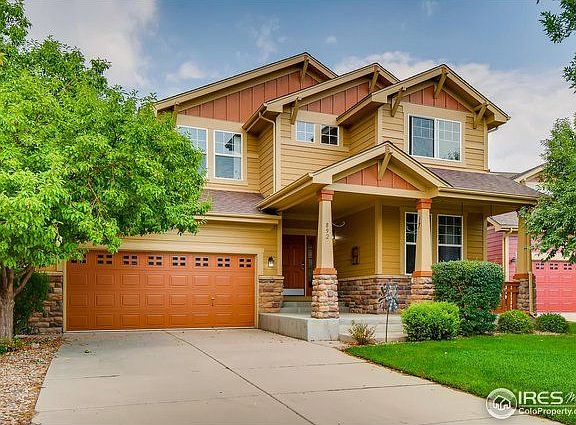Lovely 2-story, 3644 sq ft home with covered front porch and spectacular mountain views on premium lot across from open area on quiet road in the coveted community of Erie Commons! Located two blocks from pool & park; close to recreation center, library, 41-acre community park, and Old Town! Gourmet kitchen with granite counters, stainless steel appliances, wide plank walnut floors with eat-in kitchen. Separate dining room, Office, bonus room/play room off living room. Large master with 5-pc master bath and Jack & Jill bathroom on second level. New carpet on main level and fresh interior paint throughout.