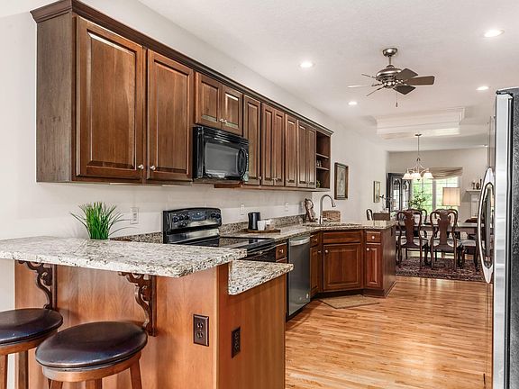 This custom-built patio home is ready for your enjoyment. Fabulous first floor owner's suite w/ sunny sitting room, luxurious bath, walk in closet and laundry room (washer new in 2024). Glowing wood floors throughout and open living areas make this an entertainer's dream. Gourmet kitchen has abundant cherry cabinetry, granite counters, and all stainless appliances. The lower level is so spacious - extra large family room, another bedroom and bath, private office, and huge basement storage area. The real bonus: French doors opening to a deck which overlooks a stream and many beautiful trees and plantings. You will delight in every season in this home.