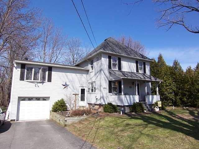 Great condition for the value!! 1896 square foot Colonial. Maintenance free exterior, large blacktop driveway. Garage is 1 car door, but has 2 car square footage. Great shop area to rear. Great room addition above features wood burning fireplace. Private country lot with small creek on west side.