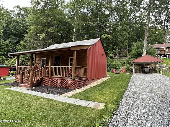This is the adorable, affordable Lake Wallenpaupack getaway you have been searching for! Buyers beware, If you see this home, you WILL fall in love with it. Although the cabin is small, every inch of space was updated and put to great use. First, you are greeted by the rustic front log siding and the covered front porch. Inside you will find an open concept living room, kitchen and dining area. The bedroom is expansive and features two large closets for storage. They did not compromise on bathroom size either! You will enjoy the nice sized updated bathroom. The home features central heat and AC, usable year-round! Outside you will find a lovely back yard area with a fire pit and covered eating area. This is THE perfect getaway and/or investment. STR friendly! Centrally located., Beds Description: 1Bed1st, Baths: 1 Bath Level 1