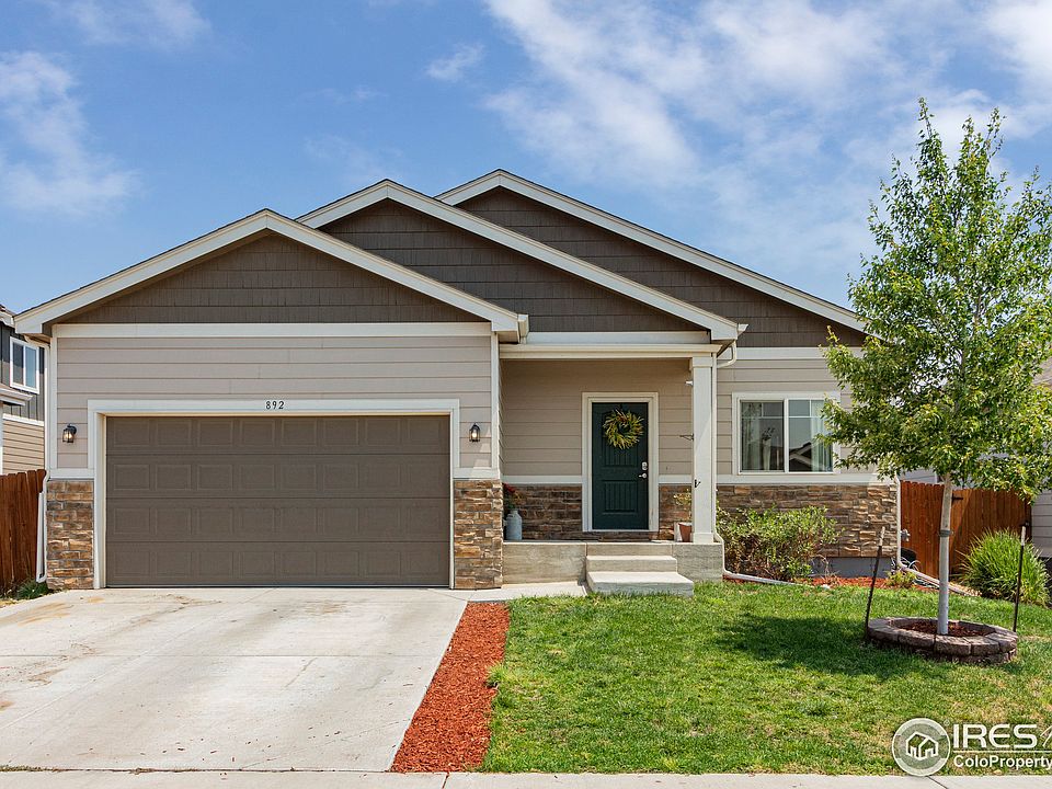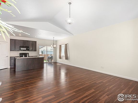 Welcome home. This 3 bed 2 bath ranch style home was built 2017 and is located in Settlers Village. This home features an open floor plan and vaulted ceilings, center island, walk-in pantry, upgraded cabinet package, laminate wood flooring throughout the main level, central air conditioning, 2 car garage, rough-in basement, and a spacious patio in the backyard to enjoy time spent outside. The master bedroom features a walk-in closet and large master bathroom with double vanity. Located just minutes away you can gain access to Sappington Park, Knowledge Quest Academy, Milliken swimming pool, and Centennial Park. Milliken is located central to the surrounding cities of Johnstown, Loveland, Windsor, and Greeley.