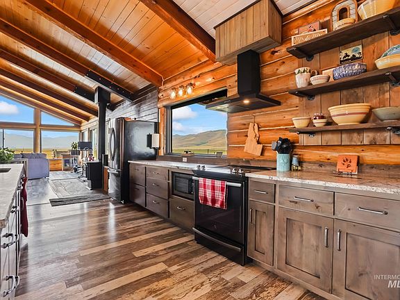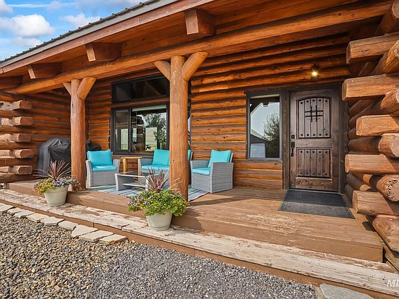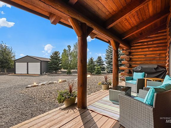 This sprawling 47 acre property features a stunning 2000 square foot log home, mature landscaping with Pines and Aspens, fully fenced back yard with established lawn and private deck, above ground pool, rock landscaping, detached 2 car garage, outbuildings, and storage sheds. From the moment you walk in, you'll be greeted by spectacular mountain views and an impressive open floor plan with vaulted ceilings and soaring wood beams. Custom finishes and upgrages throughout the home include; a gourmet kitchen with custom cabinetry and granite countertops; an oversized kitchen island, perfect for guests to gather around while entertainng; on-demand hot water; custom tiled shower/ bathrooms; all new windows; cozy wood burning stove in the great room, an additional 3 wall heaters, and electric fireplaces in each bedroom. Large loft area above the great room for extra storage. Huge walk-in utility room with additonal pantry and storage. Home is being sold fully furnished! Move in and start living the dream!