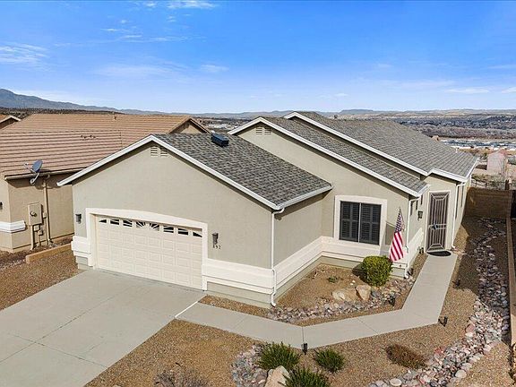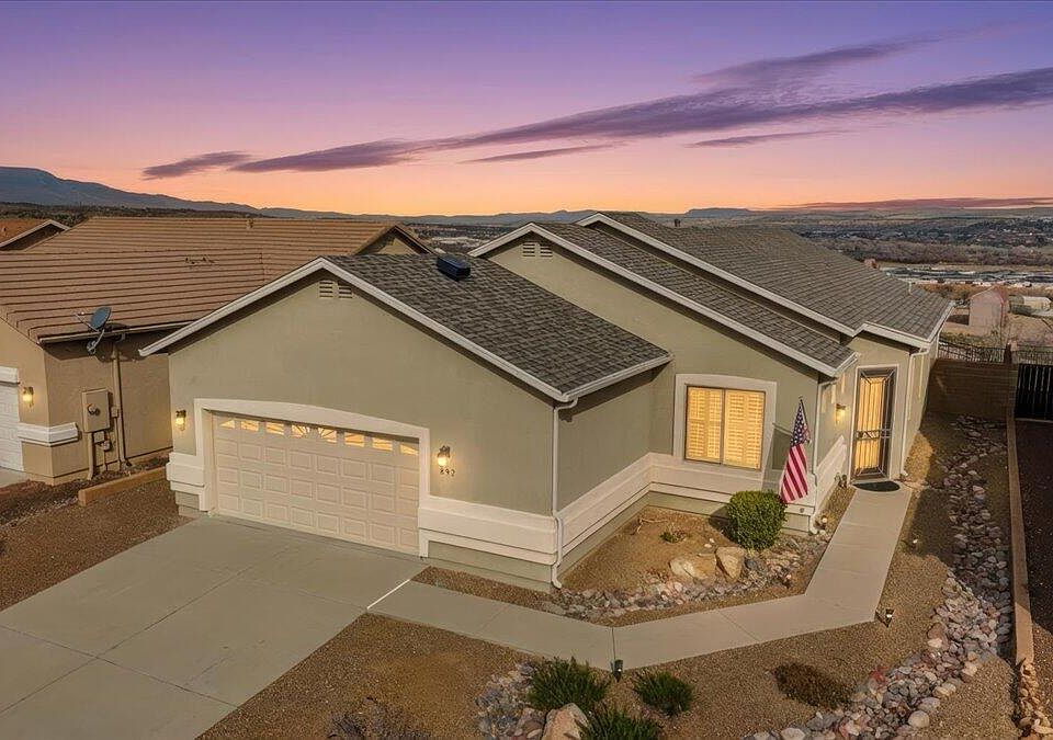 Immaculate, well-kept, upgraded beyond....2 Bed, Office/Study with built ins, 2 baths both with beautiful walk-in tile showers and quartz vanities...Upgraded instant hot water, hvac, and 2 year old roof....Plantation shutters throughout...All closets have built-ins...Primary has direct patio access...All exterior doors have steel security doors...Covered rear patio boasts extension with pavers and a small grass area plus brick flower planters...Wrought iron end fence allows for AMAZING VIEWS from Mingus to the Mogollon Rim...Two car garage, oversized both deep and wide with storage cabinets, overhead storage rack, workbench, and utility sink...With a minor amount of remodel the Office/Study could be your 3rd bedroom....Absolutely a MUST SEE!