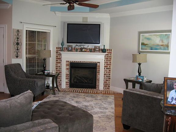 Quality throughout! Hand scraped wood floors, trey ceilings, fireplace, and leaded glass front door. Kitchen w/brick, granite, stainless, peninsula with pendants and large pantry. Living room, den and eat in kitchen. Screened porch, wrought iron fence plus extra covered parking.Easy access to the golf course. So many amenities to this Resort Community. 4 community swimming pools, 2 - 18 hole golfcourses, walking trails, marina, tennis courts, private airport, Country Club just to name a few. All furnishing are for sale. Move right in!