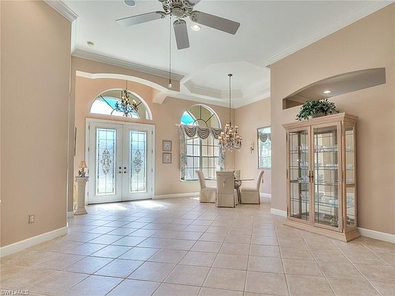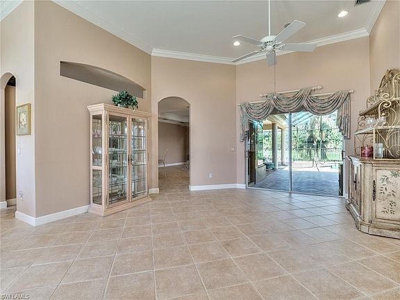 Totally storm protected, this 4 bedroom, 3 bath pool home faces a beautiful and private preserve and the 12th green of the golf course at Crown Colony. The lanai has been rescreened and has separate covered areas for relaxation and dining. Newer appliances, A/C, and pool heater plus an immaculate epoxy 2-car garage floor. Some limited furnishings will remain. Crown Colony is one of the few communities west of Rt 41 with dry interiors as it is elevated and drains well with 21 retention lakes for beauty and function. Low HOA fees include a 24 x 7 attended security gate, 24 x 7 fitness center, community pool, 4 Har-Tru tennis courts, full lawn maintenance, Xfinity fiber-optic cable TV, DVR, and high-speed internet. he Golf Club at Crown Colony, the site of the $1.5M 2022 LPGA Drive-On Championship is in great condition and open for dining and play, with social or golf membership optional.