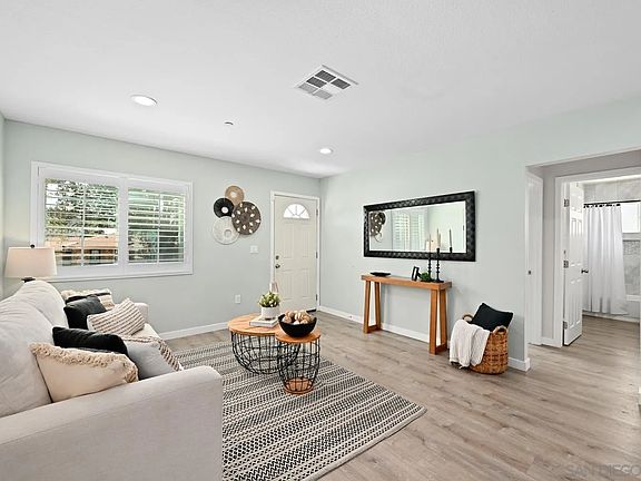 Beautiful newer construction, built in 2021, this home boasts a spacious open floor plan with wood laminate flooring throughout and elegant plantation shutters. Each bedroom is thoughtfully located in its own corner of the home, ensuring maximum privacy. Modern comforts include central heating and A/C, plus an attached 2-car garage with storage cabinets, a ceiling shelf, and electric car charging capabilities. The beautifully appointed kitchen showcases crisp white shaker-style cabinetry, a custom tile backsplash, quartz countertops, stainless steel appliances, and an island with breakfast counter seating. The spacious primary suite offers exterior patio access, ample closet space, and a private en-suite bathroom. The low-maintenance backyard features turf, stamped concrete, and a covered patio—perfect for outdoor entertaining—along with a storage shed for extra convenience. Additional highlights include RV parking and easy-care landscaping, combining functionality with style.