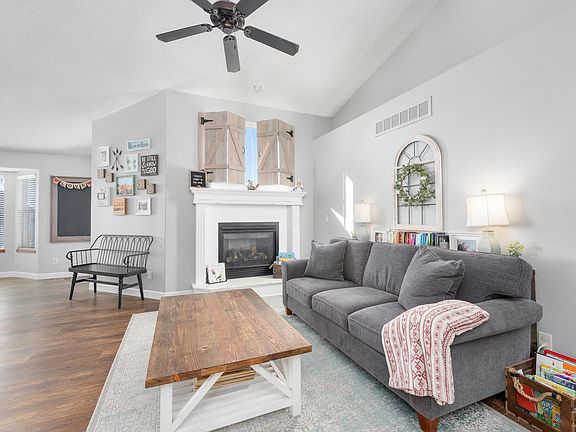 Charming home on a cul de sac lot in Park City with Valley Center Schools. Lovely split bedroom floor plan with tons of natural lighting. You will feel at home the second you walk in and see the gas fireplace and cozy shutters on the window above so you determine just how much sunlight you want. Kitchen is not in the sightline of the front door so no worries if you are not finished with those dinner dishes! Main floor laundry. (Washer, dryer and refrigerator are negotiable with acceptable offer). Primary bedroom has separate soaker tub and stand alone shower and a nice walk in closet. The view out basement is a blank canvas for your personal taste so you can finish it as you wish. There is a 4th bedroom already finished down there. Plumbed for 3rd bath as well. Back yard is fenced (play set and trampoline also negotiable) and there is a nice wood deck, patio with firepit and a sprinkler systems to keep the yard beautiful. Please allow a notice of at least 2 hours for showings.