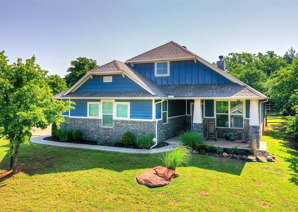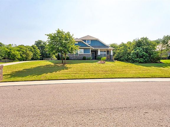 Pristine home located in the rolling hills of Canyon Creek! This 3 bed home comes with a backyard hot tub which is in full working order, refrigerator, completely rebuilt and remodeled primary shower, garage floor storm shelter, water softener, wood burning fireplace, fenced back yard (extends beyond the fence), sprinkler system and Vivint security system...whew! The Primary bedroom is "split" from the secondary bedrooms and the kitchen space is open to the family living area. Full gutters were a must to the these home owners as this was a custom build for them. This neighborhood is close to I35 so commuting to OKC is fast and travel to either Edmond or Historic Guthrie are easy! The neighborhoods topography is stunning with the rolling hills and trees. The trees on this home lot completely surround the backyard for added privacy. Plan on watching either sunrises or sunsets from the covered patio or covered porch for years to come!