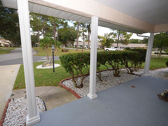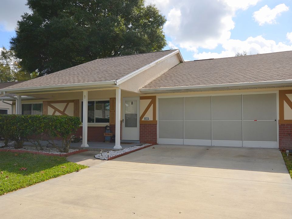 Open space views from private front porch! This large expanded Montgomery model villa is located in the much sought after gated 55+ community of On Top of the World. A large front porch under roof welcomes you to the home. Enter the combination Formal Living/Dining Room. Moving toward the back of the home you find the Kitchen that overlooks a Great Room that has new laminate flooring and boasts a brick wood burning fireplace with wood mantle. A glass enclosed, tiled Sunroom in the back of the home leads to an extra deep back yard with no neighbors directly behind you. To the left of the Formal Living/Dining Room are the Master and Guest Bedrooms which are joined by a common hallway and Guest Bath. The Master Bedroom suite features a large walk-in Closet and updated Master Bath with large step-in Shower. New roof (2015), new double pane windows (2011-2012), neutral colors throughout, 2-car Garage, extra-long driveway, located in a very quiet corner of the community, and much more!