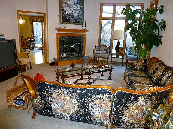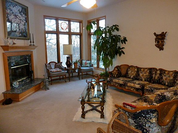 Outstanding Cust Ranch*great flr plan*appx 5 acres*Great views*wds & park from lge deck+most rms. A cozy Hearth Rm w/skylites*lge kitch, utilizing a dual sided flr to ceil brick gas FP in Great rm & kit. Abundant counters & oak cab. Foy+Neutral tiled dr & foy flr*high/tray ceil*whirlpool*lge shower*dual sink in mbth*full Eng bmt *stub bth*Cent Vac*sec syst*4 car gar+20x30 outbldg*9'' high*16x8 dr*cir driv*