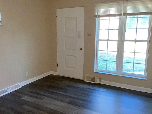 Living room with new flooring! 2 Bedrooms. 1 Bathroom Kitchen with stove and refrigerator. Window a/c units and Gas heat. Sewer and trash included with rent.