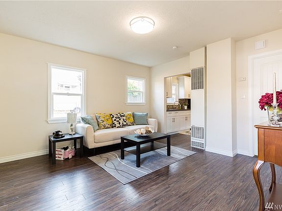 Stunning remodel! New roof 10-year warranty. Kitchen features new quartz countertop, high-end cabinets, crown molding and stainless steel appliances. New double-pane vinyl windows, floors & carpet throughout. Fresh paint interior and exterior. Two new bathrooms with tub or shower pan, tile surrounds, vanity & toilet. New doors, trim, furnace, water heater & light fixture. Fully finished basement. Flat lot and carport in back. Close to bus, I-5 and light rail. Will consider seller financing.