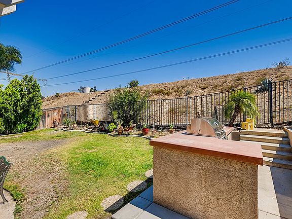 Can't-miss 4 bd/ 2.5 ba home with great open floor plan and amenities nestled before the Santa Ana Mountains in beautiful Corona! Enter past the palms and pleasant landscape, where you'll find yourself welcomed into the wonderful tile foyer; a formal sitting area with plenty of natural light and a relaxing ambiance sits just to your right. Picture yourself hosting guests for a dinner party in the dining area, which attaches seamlessly to the living area -- it's perfect for maintaining conversation. The spacious eat-in kitchen is just around the corner; it boasts ceramic tile countertops, wooden cabinetry, white appliances and has access to the backyard. Beyond the kitchen is the primary living area, bright and breezy with tile flooring, a charming fireplace and plenty of room to unwind. Make your way to the large primary bedroom and marvel at the beautiful hardwood flooring, secondary room with balcony access and mountain view, soft light and regal ensuite bathroom with a corner shower, soaking tub and massive, dual sink vanity -- the space has all the amenities you'll need! The secondary bedrooms are all well-sized and include hardwood flooring and closet space, ideal for creating a home office or studio. The backyard is a dream for the grill aficionado; it has a built-in gas unit with large prep areas overlooking the grassy backyard. A covered pergola connects to the house and offers you a shady area to enjoy the beautiful scenery. Other features: central A/C, forced air heating, attached two-car garage and driveway. Nearby: Glen Ivy Golf Club, Champions Club at the Retreat, Tom's Farms, Lake Mathews, Santiago Peak, local shopping and dining, easy access to 15 Fwy. Buyer to verify all information.