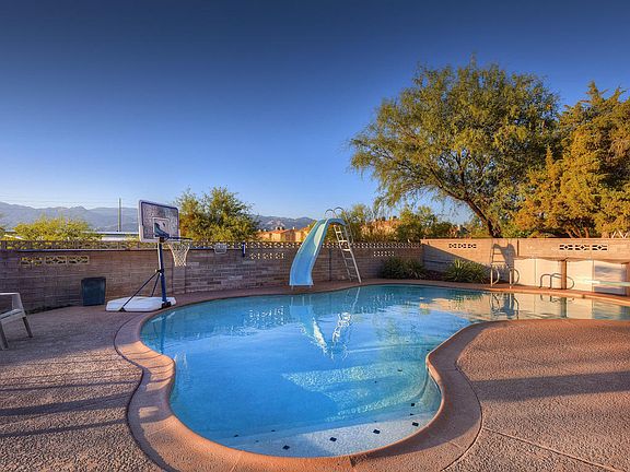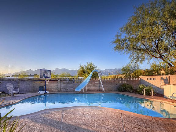 Lovely curb appeal with breathtaking Catalina Mountain Views in this spacious and fully updated home. Newly converted garage, new windows, wood-look tile and carpet. Enormous laundry room with incredible space for storage. Master includes a large walk in closet and beautiful bathroom. 4th Bedroom has attached bonus space with exterior access to be used for studio, office, gym etc. Backyard is an entertainers dream- enjoy the pool with slide and diving board!!