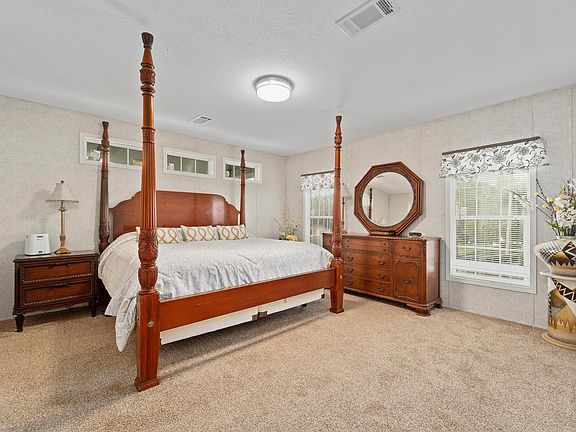(Active with Contract ; BACK UP OFFERS WELCOME) Simply GORGEOUS FURNISHED 2019 manufactured home in vibrant 55+ community WHERE YOU OWN YOUR OWN LAND. This beautiful open floorplan home is HANDICAPPED ACCESSIBLE and features a LARGE ISLAND KITCHEN w/SNACK BAR. There are too many upgrades to list, including and WOOD BURNING FIREPLACE, custom built in shelving and accents, DINING ROOM w/CHAIR RAIL MOULDING and TRAY CEILING. You will love the INDULGENT MASTER BATHROOM with TWO VANITIES and GLASS & TILED SHOWER. Oversized DOUBLE CARPORT. Large backyard possible room for a pool. Fruit trees planted include banana, avocado, loquat and mango trees. INSULATED WINDOWS. Large utility room. Located in High Point Golf Community close to major shopping, medical services, entertainment and only 45 minutes to Tampa International Airport. Community amenities include tennis, heated pool, horseshoes, bocce, community center, pickle ball and more. Located near major medical facilities, shopping and restaurants.