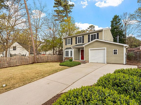 This North Raleigh 3-bedroom,1.5-bath home offers a 1,585 sq ft floor plan conveniently located on a cul-de-sac lot just 5 minutes from I-540. Built in 1984, the property has been meticulously renovated and features a spacious private fenced-in back yard and attached garage. Updates include low-maintenance vinyl exterior, roof with architectural shingles and transferable warranty installed in 2021, water heater 2021, new carpet 2022, LVP in kitchen/downstairs bath/entry 2022, hardwood in living room refinished 2023, freshly painted in 2024, GE stainless steel appliances and much more! Centrally located within minutes of schools, shopping centers, dining spots, and popular areas like Midtown/North Hills, this home also offers easy access to walking trails, providing a blend of suburban tranquility and urban convenience. Downtown Raleigh and RDU airport are just 20 minutes away. No HOA! Given its prime location and desirable features, this beautiful home will attract attention quickly. Don't miss out on the opportunity to make it yours!
