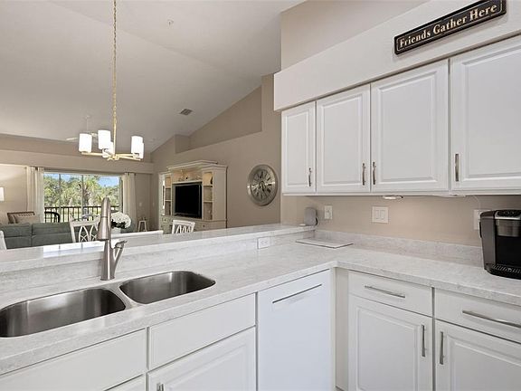 Available for next season- November 1, 2025 thru 2026.Lease your own little bit of Paradise. This condo is in Stoneybrook Golf & Country Club and has been completely remodeled with new cabinets, floors, appliances, counters, vanities and furniture. Tastefully decorated with upscale furnishings and linens. The front lanai is a great place to gather and enjoy the sunsets. The rear lanai is glass enclosed and has a spectacular view of the golf course, pond and trees. It's a great place to enjoy your morning coffee or put your feet up and relax. The master suite has a king size bed, 2 walk-in closets and ensuite bathroom. The guest suite has 2 twin beds and a bathroom nearby. There is a detached garage in front of the condo. The condo is located across from the community tennis/pickleball court and pool. The golf membership can be transferred to renter for an additional fee. Electric and internet is included. Rental rates: Nov-Dec 2025-$4500. per month, Jan-April 2026 $6,000. per month, off season rates are negotiable.