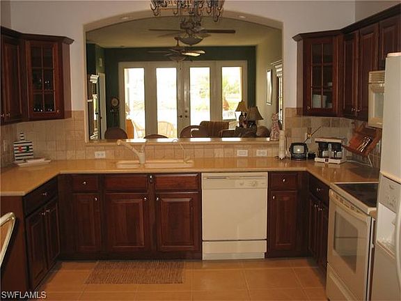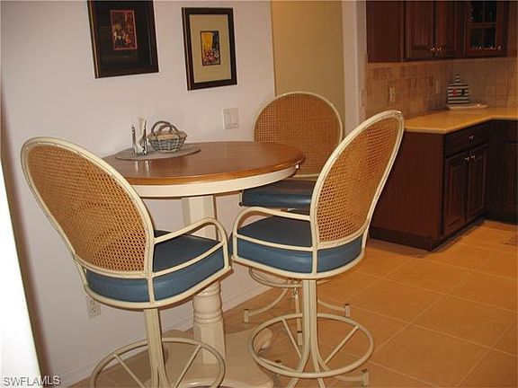 Stunning lakefront villa, all on one floor with no one above! The open floor plan with a great room design features 2 bedrooms + a den, ( or 3rd bedroom with French doors and a closet), The kitchen is spacious and features cherry wood cabinets, solid surface counters & a tumbled marble backsplash. There is large tile in all of the main living areas, carpet only in the bedrooms. Soaring 10 ft 10 inch ceilings in the entry, 9 ft 3 throughout the rest of the villa. The master bathroom has double vanities and includes a jetted tub + separate shower. The large walk-in closet has custom built-ins. French doors ( 7 ft 8 inches high) from the living room open to the the expanded lanai - perfect for sunning & offers privacy from the adjoining unit. The community has an exercise room, play area and large heated community pool. The location offers quick access to the area beaches of Ft. Myers beach and Sanibel Island, and is just minutes from Health Park hospital and shopping. *** Buyer purchased furnishings for an additional $6500 above the $235,000 purchase price.